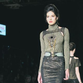La diseñadora mexicana muestra una colección con brillo para iniciar un desfile de talento en Expo Guadalajara
