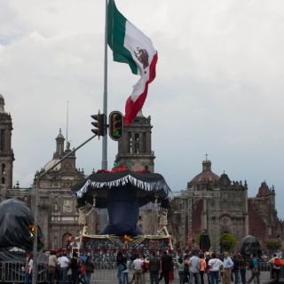 Desde primera hora de este jueves, los principales acceso al Zócalo se encuentran cerrados a la circulación debido al rodaje de la cinta; en la explanada se instaló una gran ofrenda y se espera el descenso de un helicóptero.