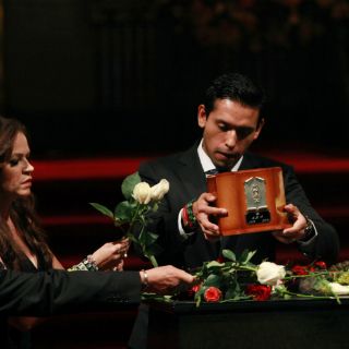 En la última guardia de honor estuvieron Iván Gabriel, hijo de “El Divo de Juárez”, su esposa; Rafael Tovar y de Teresa, secretario de Cultura; María Cristina García Cepeda, directora del Instituto Nacional de Bellas Artes, y Jesús Salas, mánager de Juan Gabriel.
