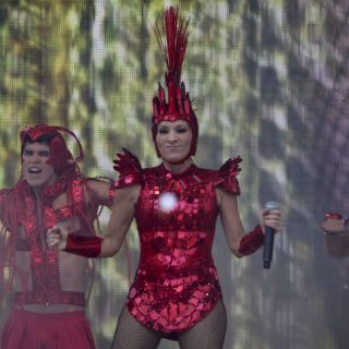 El recital musical duró dos horas e inició a las 13:50 horas, con los bailarines en el escenario y la cantante de origen veracruzano.