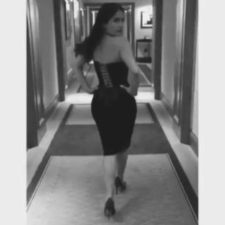 "Meneando las caderas camino a una sesión de fotos", escribió al pie de su video.