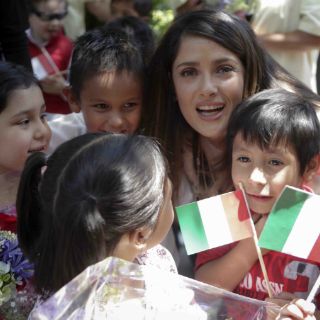 Hayek quien forma parte del consejo estratégico franco-mexicano, compuesto por personalidades de ambos países, con el propósito de lanzar la relación bilateral, se reunió con algunos menores que dieron la bienvenida con flores a la comitiva oficial.