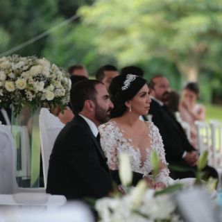 Luego del matrimonio por lo civil donde se dieron el sí, hubo una bendición religiosa a manera de agradecimiento por unir sus vidas. Después, como acto simbólico se liberaron palomas blancas.