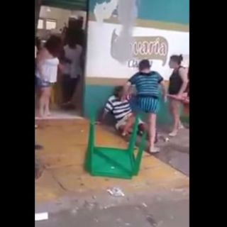 En el video, que dura tan sólo 49 segundos, se aprecia a una mujer con lo que parece un botella en mano, misma que le es retirada por otro sujeto, acto que aprovecha quien presuntamente está bajo los efectos del alcohol y avienta a la mujer, desatando la ira de las féminas.