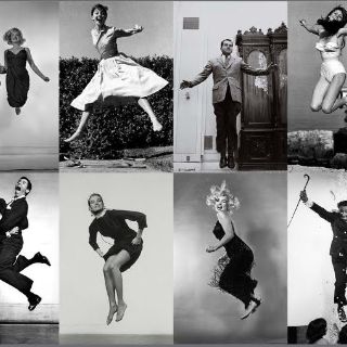 La fotografía, en blanco y negro pertenece a la serie "Jumpology" de Halsman, en la que retrata a famosos saltando.