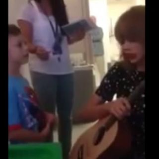 Al convivir un poco con él y con su familia, la intérprete no dudó en sacar su guitarra para interpretar la canción preferida de Jordan "We Are Never Ever Getting Back Together" acompañada de la voz y pasos del baile del pequeño.