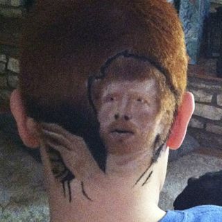 Un joven se hace un corte de cabello con el rostro de Matt Bonner