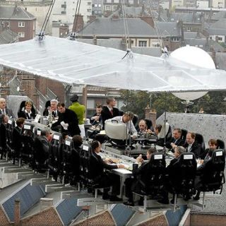 A primera vista, parecería que una cena no tiene nada particular y mucho menos emocionante, pero eso cambia cuando ésta misma se lleva a cabo en una grúa a 45 metros de altura suspendido.
