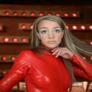 En un traje rojo de látex ruidoso, la también actriz corea su éxito internacional “Oops!...I did it again” mientras ensaya la coreografía sin la pista de la canción.