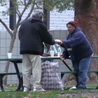 La sorpresa fue que el sujeto fue hacia un parque cercano para buscar a otros vagabundos.