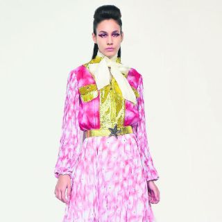 Un foco primordial en las últimas colecciones del diseñador son los juegos de texturas, trasparencias y formas metalizadas. “Fue combinar prints y a estos les di textura con plisados, y además los mezclé con colores muy protagonistas como los metalizados. Además, los decoré; al final, resultó algo muy padre”.