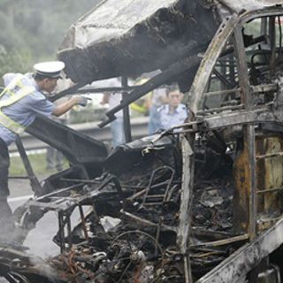 El autobús que cubría el trayecto entre Bangkok y Roi Et, en el nordeste del país, se incendió después del accidente.