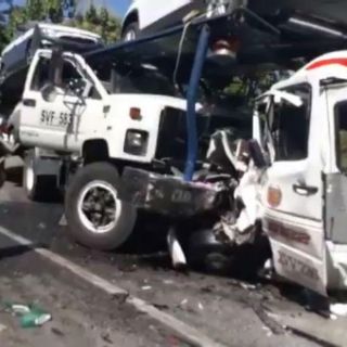Un camión que cargaba automóviles chocó contra un autobús de servicio público que transportaba 16 personas