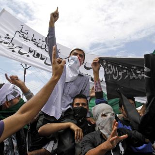En Srinagar, la principal ciudad cachemir, una huelga cerró los negocios y obligó a suspender el transporte público mientras los manifestantes quemaban banderas estadounidenses, así como un muñeco del presidente Barack Obama.