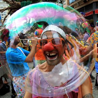 Los payasos atravesaron varias de las calles más bulliciosas de la zona comercial del centro de Río y tomaron por sorpresa a los brasileños en plena jornada laborable con su irreverencia y sus ganas de fiesta y de algarabía.
