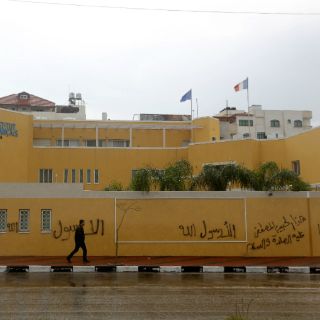GAZA, TERRITORIOS PALESTINOS (17/ENE/2015).- El muro exterior del centro cultural francés de