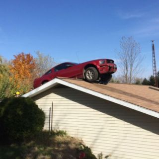 Anciana encuentra un Mustang en el techo de su casa
