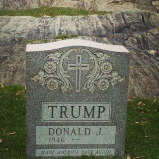 También incluía un mensaje, a modo de epitafio, que decía "Hagamos que Estados Unidos odie de nuevo", en referencia al lema "Hagamos a Estados Unidos grande de nuevo", que viene usando en su campaña por obtener la candidatura presidencial republicana.