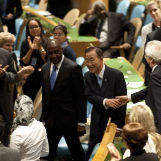 “Como secretario general, Ban fortaleció el papel y la visibilidad de la ONU en el mundo, al adoptar medidas e iniciativas a favor de los derechos humanos, el estado de derecho y los otros valores promovidas por la ONU”, declaró Joseph Deiss, presidente de la Asamblea General.