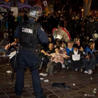 LOS ANGELES, ESTADOS UNIDOS (30/NOV/2011).- Más de 200 manifestantes fueron arrestados hoy al iniciarse el desalojo de cientos de miembros del movimiento 'Indignados de Los Angeles' que acamparon frente a la alcaldía, sin que se reportaran actos violentos ni enfrentamientos.