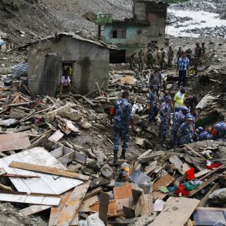 Treinta cuerpos fueron extraídos de entre los escombros dejados por el deslizamiento de tierras, provocado por las fuertes lluvias del monzón, que destruyó varias aldeas a primeras horas del sábado cerca de un río en el distrito de Sindhupalchok, unos 120 km al noreste de la capital, Katmandú.