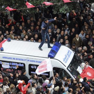 "¡El pueblo quiere la caída del régimen!", gritaban al unísono los decenas de manifestantes que rodeaban el vehículo con el cuerpo de Belaid, férreo opositor al gobierno de los islamistas en la República de Túnez.