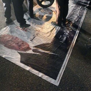 "Shafiq será presidente cuando esté muerto", rezaba un cartel de los manifestantes que pisoteaban afiches del candidato desparramados por el suelo.