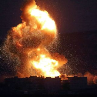 MURSITPINAR, TURQUÍA (18/OCT/2014).- Un ataque aéreo de la coalición internacional encabezada por