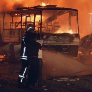 La televisión mostró imágenes de vehículos calcinados, mientras los bomberos intentaban apagar el fuego.