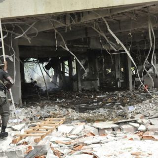 Un kamikaze en coche logró flanquear las barreras de seguridad de la sede y lanzó su vehículo contra la entrada del edificio.