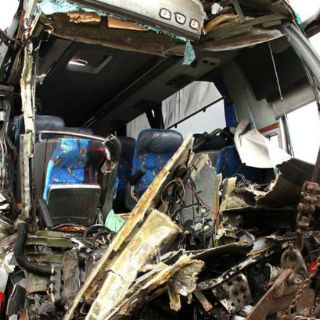 Imágenes de televisión mostraron cuerpos esparcidos alrededor de los restos del autobús, con policías en los alrededores. La furgoneta era una pila irreconocible de metal blanco retorcido.