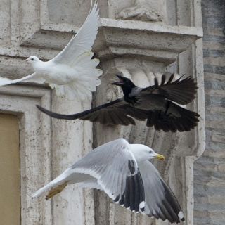 Ante la vista de miles de personas reunidas en la plaza de San Pedro, una gaviota y un cuervo negro grande se abalanzaron contra las palomas apenas fueron liberadas desde una ventana del Palacio Apostólico.