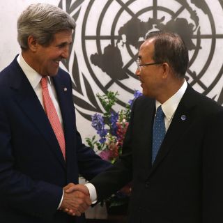 El secretario de Estados estadounidense, John Kerry, instó a hallar una solución política a la guerra civil en Siria, dijo el secretario general de la ONU, Ban Ki-moon, quien llamó a hacer nuevos esfuerzos para una conferencia de paz.