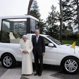 CIUDAD DEL VATICANO (07/DIC/2012).- El papa Benedicto XVI recibió hoy dos nuevos papamóviles, vehículos panorámicos dotados con cúpulas de vidrio blindado, similares a los que utilizaba hasta ahora en sus viajes internacionales, pero con varias innovaciones tecnológicas.