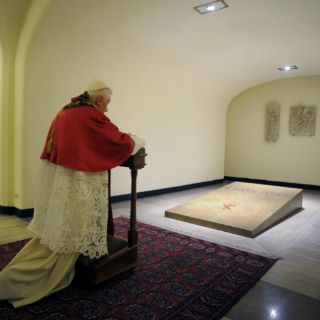 CIUDAD DEL VATICANO (02/NOV/2012).- Benedicto XVI dedicó hoy un momento de oración por los Papas difuntos de la Iglesia católica, en las Grutas Vaticanas ubicadas en el subsuelo de la Basílica de San Pedro y con motivo del Día de Muertos.