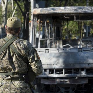 KIEV, UCRANIA (01/OCT/2014).- Al menos 10 personas murieron y siete más resultaron heridas a consecuencia de varios bombardeos contra una escuela y un autobús en la autoproclamada República de Donetsk, en el oriente de