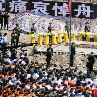 Representantes políticos y ciudadanos de todo el país se detuvieron durante tres minutos, en memoria de las víctimas de la arrasada Zhouqu, donde un tercio de la población es tibetana.