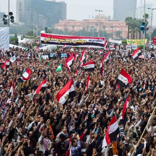 EL CAIRO, EGIPTO (19/NOV/2011).- Decenas de miles de egipcios se manifestaron hoy en la plaza cairota de Tahrir, símbolo de la Revolución del 25 de Enero, para pedir el traspaso del poder a los civiles y protestar contra las prerrogativas que se quiere reservar la junta militar. En un ambiente festivo, hombres y mujeres de todas las edades y numerosas familias con niños abarrotaron la plaza del centro de El Cairo, que se tiñó de rojo, blanco y negro, los colores de la bandera egipcia.