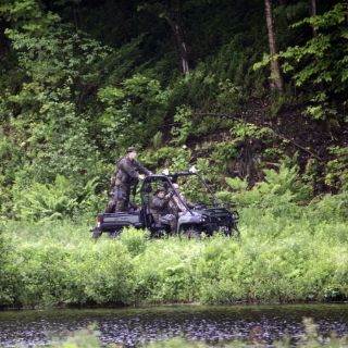 Los equipos revisaban senderos, caminos donde se talan árboles y líneas de ferrocarril, al tiempo que iban de puerta en puerta y realizaban metódicas búsquedas en bosques infestados de mosquitos, dijo el jefe policial del condado Franklin, Kevin Mulverhill. Agregó que la gente está revisando propiedades de vacaciones en busca de indicios de intrusos.