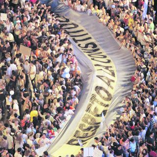 Encolumnados sin banderas partidarias y portando sólo las celestes y blancas de la nación, la gente alrededor del Obelisco levantó un cartel con la leyenda “¡Basta de matar!”, una demanda contra los continuos asaltos seguidos de muerte.