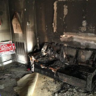 La sustancia se incendió y el fuego dañó mobiliario dentro; todo acabó hasta que la sustancia se agotó por combustión.