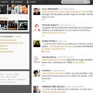 Un escrito que se atribuye alguien que dice ser de Argentina reza: "#ElMundoEstaConChavez fuerza compañero @chavezcandanga, el pueblo argentino reza por su mejoría" mientras otro señala: "#ElMundoEstaConChavez Desde El Salvador oramos por tu salud Chavez".