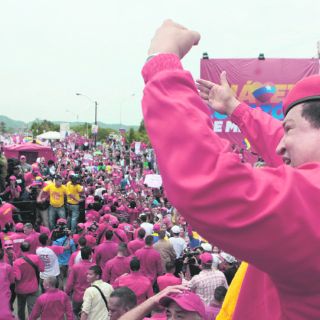 Chávez (en una camioneta sin techo, con camisa y boina rojas, los colores distintivos de sus simpatizantes) encabezaba un recorrido por el Centro-Norte del país, en un intento por demostrar que está en buen estado, pese al cáncer con el que lucha desde hace un año.