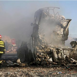 El autobús y el camión se incendiaron y quedaron convertidos en hierros retorcidos, según imágenes transmitidas por la televisión.