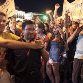 MADRID, ESPAÑA (18/AGO/2011).- “Benedicto” gritaban los peregrinos de la Jornada Mundial de la Juventud (JMJ), a lo que los manifestantes respondían “menos religión y más educación”; “ésta es la juventud del Papa”, replicaron los peregrinos, por lo que los primeros les contestaron “menos Cristo Rey y más orgullo gay”. Para entonces la Policía española debió intervenir.