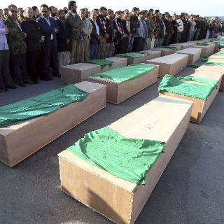 Según informó el corresponsal de CNN en Trípoli, Nick Robertson, varios cientos de personas acudieron al cementerio de los Mártires de la capital libia, donde se iba a inhumar a las supuestas víctimas, que estaban en trece féretros cubiertos con paños verdes, el color del régimen del líder libio, Muamar Gadhafi.