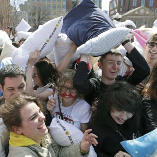 Por el Día Internacional de la Pelea de Almohadas la imagen se repitió en varias ciudades del mundo