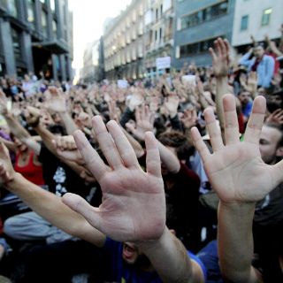 Los manifestantes leyeron una moción en la que afirman que, "antes incluso de que la ley sea aprobada, decimos 'basta'. No más recortes presupuestarios, no somos mercancías en manos de los banqueros y los políticos".