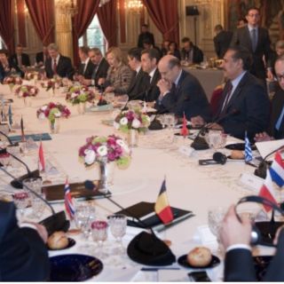 También están en el Elíseo la alta Representante de Política Exterior de la Unión Europea, Catherine Ashton, el presidente del Consejo Europeo, Herman van Rompuy, el secretario general de la ONU, Ban Ki Moon, y el secretario general de la Liga Árabe, Amro Musa.