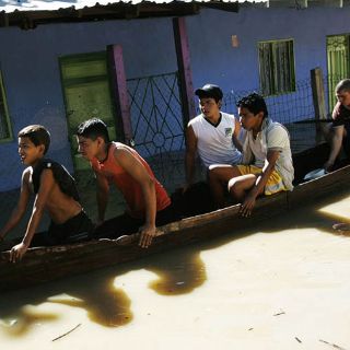 COLOMBIA (21/NOV/2010).- Residentes usan canoas para navegar a través de las calles inundadas en Bolombolo, departamento de Antioquia. Las fuertes lluvias en todo Colombia han dejado 138 personas muertas y 1.2 millones de personas sin hogar lo que va del año.
